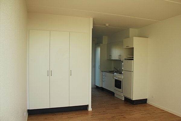 Billeder af 1-værelses lejlighederNobel kollegiet har 84 1-værelses lejligheder,